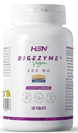 HSN Digezyme 200mg Enzimas Digestivas Veganas | 120 Tabletas | Patente Digezyme® (Amilasa Proteasa Lactasa Lipasa Celulasa) | Digestión de Proteínas, Carbohidratos, Grasas y Celulosa