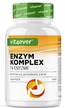 Enzimas Digestivas – 180 Cápsulas con 16 Enzimas más Betaína HCL, Rutina y Raíz de Genciana – Con Bromelina, Papaína, Amilasa, Lipasa, Proteasa, Lactasa – Vegano – Alta Dosis