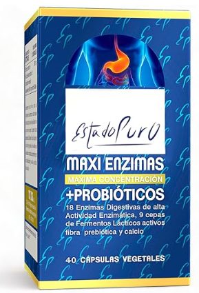 Maxi Enzimas + Probióticos Estado Puro | 18 Enzimas Digestivas Potentes | Con Probióticos y Prebióticos Intestinales | Mejora la digestión y la Absorción de Nutrientes | 40 Cápsulas de Tongil