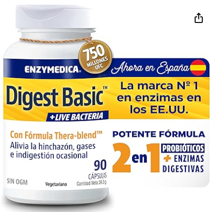 Enzymedica, Digest Basic + Live Bacteria, Fórmula Enzimática, Reduce los Gases y la Hinchazón, Mejora la Absorción de Nutrientes y la Energía, Sin gluten, Sin lácteos, 90 Cápsulas