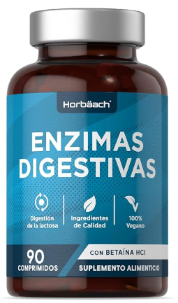 Enzimas Digestivas Potentes | Complejo con Amilasa, Proteasa, Lactasa, Lipasa y Celulasa | 90 pastillas veganas | Horbaach