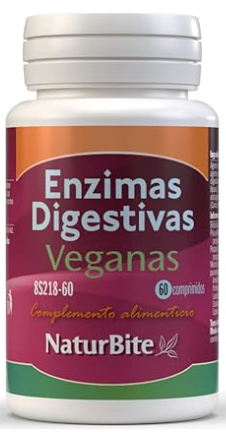 Naturbite Enzimas Digestivas, 60 comprimidos Mejora del proceso digestivo facilitando la descomposición y absorción de los nutrientes de los alimentos