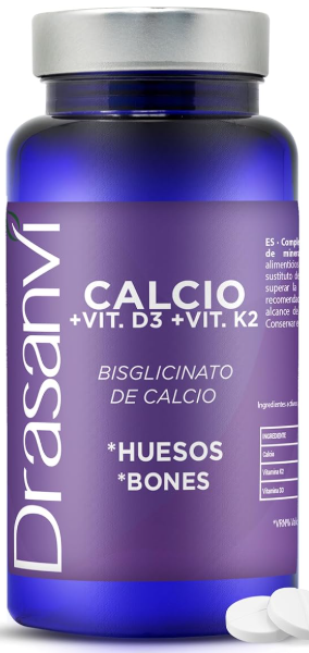 DRASANVI CALCIO + VITAMINA D3 + VITAMINA K2 | Mantenimiento de huesos y dientes | Fortalecimiento óseo | 90 comprimidos = 45 días