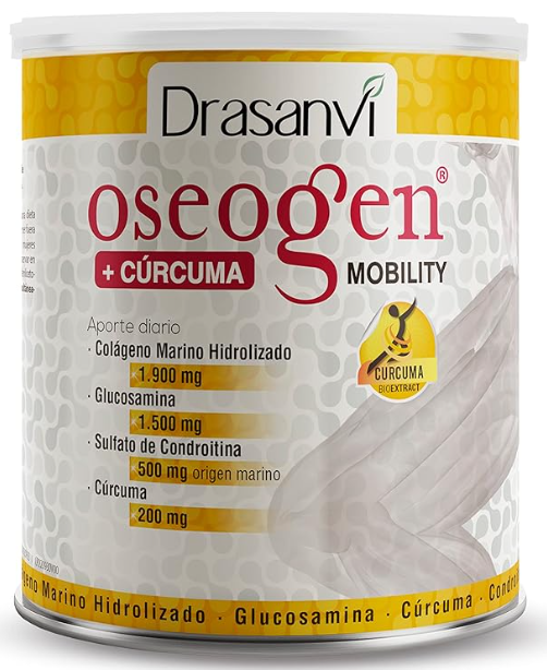 Drasanvi OSEOGEN Colágeno Marino Hidrolizado con Glucosamina, Condroitina y Cúrcuma para huesos, cartilagos y articulaciones, Con minerales esenciales, Fácil asimilación, 300 g polvo, Sabor Naranja