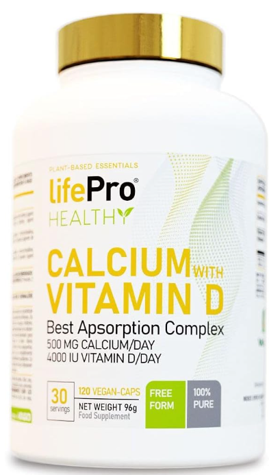 Life Pro calcio con vitamina D – Calcio y vitamina D para mejorar la absorción de calcio y fósforo – Ayuda a fortalecer huesos y dientes – Suplemento alimenticio sin aditivos – 120 cápsulas veganas