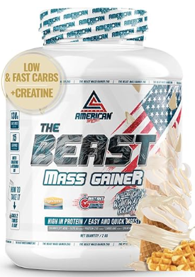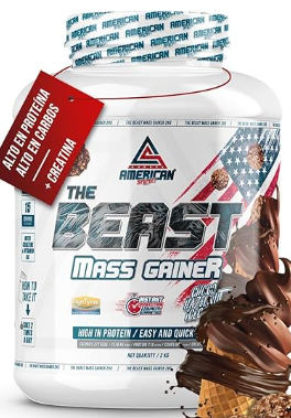 AS AMERICAN SUPLEMENT, The Beast Mass Gainer, 2 kg, Choco Blanco con Gofres, Contiene Creatina Monohidrato, Ayuda a Subir de Peso, Alto en Carbohidratos y Proteínas, 1 item