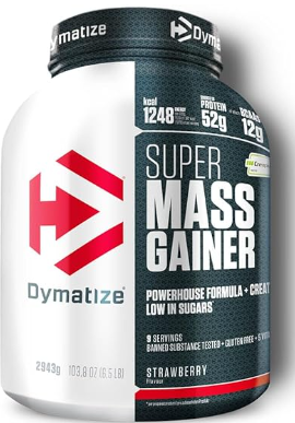 Dymatize Super Mass Gainer Strawberry 2943g – Polvo Para Ganar Peso + Carbohidratos, Creapure Creatina, BCAA y Caseína