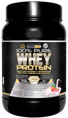 Healthy Fusion Whey Protein | Proteína pura con Colágeno + Magnesio | Tonifica y aumenta la masa muscular | Mejora tus entrenamientos | 1000g (Fresa)