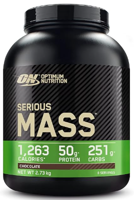 Optimum Nutrition Serious Mass Proteína en Polvo Alta en Calorías, Ganador de Masa Muscular con 25 Vitaminas y Minerales, Monohidrato de Creatina y Glutamina, Sabor Chocolate, 8 Dosis, 2,73 kg