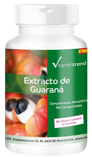 Extracto de guaraná 300mg – 4 veces mayor concentración – con 10,5 mg de cafeína por dosis diaria – vegano – tratamiento para 6 meses – 180 comprimidos | Vitamintrend®