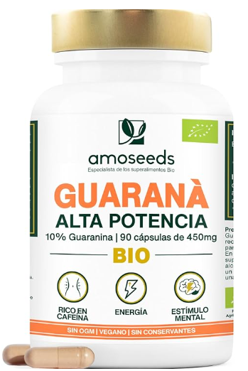 Guaraná BIO | Alta Potencia, 5400mg / día | Puro y Orgánico, 10% Cafeína natural | 90 cápsulas | Control del Peso, Energía, Concentración | Primera Calidad