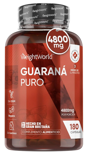 Guaraná Puro 4800mg – 180 Cápsulas, Potente Fuente de Cafeína del Extracto de Semillas de Guaraná en Polvo – Suplemento Dietético para Dietas Bajas en Grasas – Para 3 Meses, Vegano, Keto y Sin OGM