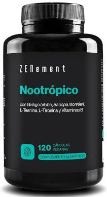 Nootrópico Natural, 120 cápsulas – Fórmula para incrementar la memoria, concentración y agilidad mental – con Ginkgo Biloba, Bacopa Monnieri, Tirosina, Teanina y Vitaminas – Zenement