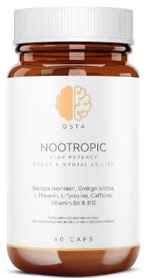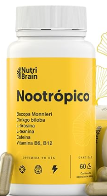 Nootropico Alta Potencia para Incrementar Energía, Concentración, Funcion Cerebral, Agilidad Mental & Memoria, con Ginkgo biloba, Tirosina, Teanina, Bacopa monnieri, Cafeína, B6 & B12