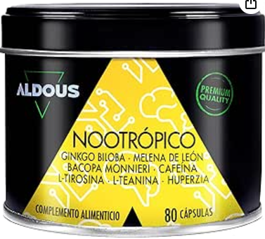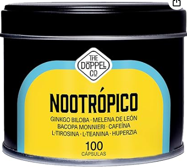 100 Cápsulas de Nootrópico Natural | 800 mg | Memoria, Concentración, Energía | Ginkgo Biloba, Melena de Leon, Cafeina, Bacopa Monnieri, Tirosina, Teanina, Huperzia | Fabricado en España