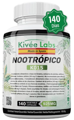 KivéeLabs® 140 Cápsulas Nootrópico Natural | Fórmula Mejorada Vegana con Ginkgo Biloba, Bacopa, Té Verde, Tirosina y Vitaminas B6/B12 | Memoria, Concentración, Agilidad Mental, Energía