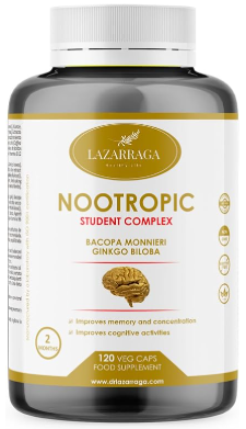 Lazarraga | Nootrópico Potente Memoria Estudiantes | Agilidad Mental y Concentración | Ginko Biloba, y Bacopa Monnieri | 120 cápsulas Veganas | 2 Meses