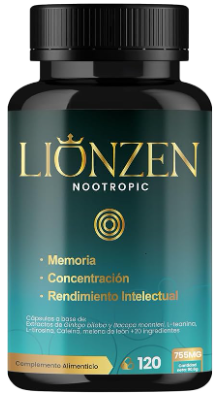 LIONZEN NOOTROPIC. Nootropico Memoria y Concentración | +23 Ingredientes | Bacopa, Ginkgo Biloba, Cafeína, Melena león, Vitaminas, Magnesio, L-Tirosina, Ashwagandha, Ginseng y Zinc.