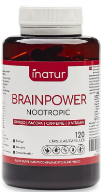 Brainpower Nootropico -120 cápsulas | Nootropico Natural | Cafeína, Ginkgo, Bacopa, Vitaminas B3 B5 B6 B9 B12 | Vegano | Mejora la memoria, concentración y la energía | Inatur