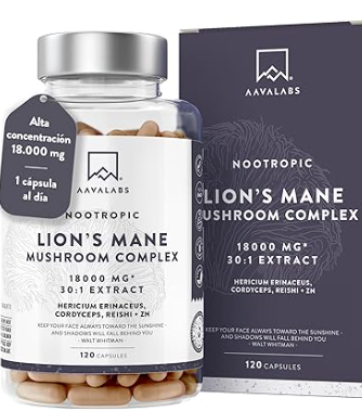 Melena de Leon 18,000mg (30:1) + Zinc, Reishi & Cordyceps – Alta Potencia Lions Mane Mushroom pastillas memoria y concentración -120 Melena de Leon Capsulas – Nootropicos Memoria y Concentracion