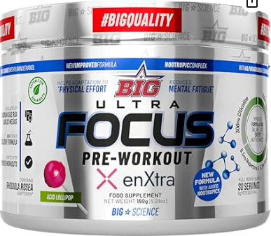 BIG – Pre entreno Gimnasio Potente con Nootropicos, Aumenta la Concentración y Reduce la Sensación de Fatiga, Formulación Única y Exclusiva, 300mg de Cafeína, 30 tomas (150g, Acid Lollipop)