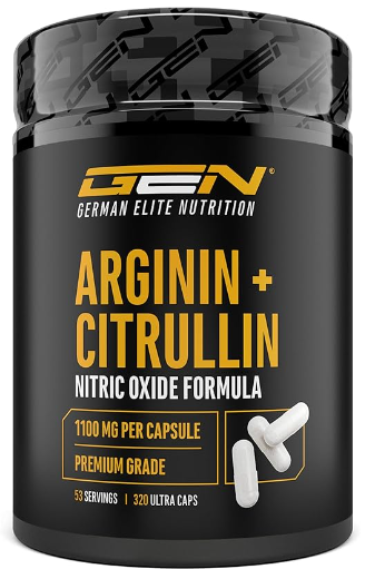 L-Arginina + L-Citrulina – 320 cápsulas – 1100 mg por cápsula – Citrulina + Arginina Base en proporción 1:1 – Aminoácidos Premium