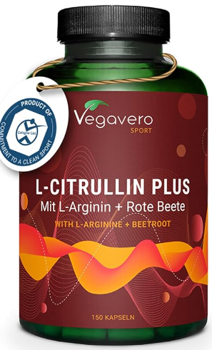 L-Citrulina + L-Arginina + Remolacha Vegavero® | más de 2900 mg de L Citrulina Malato | Fermentación Vegetal | Sin Aditivos | Pre Workout | Testado en Laboratorio | Vegano | Calidad Alemán