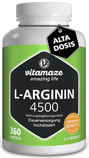 Vitamaze® L-Arginina 4500 mg Altamente Concentrada, 360 Cápsulas, Adecuado para las Personas Alérgicas, Pura Natural L-Arginine HCL sin Aditivos Innecesarios, Calidad Alemana