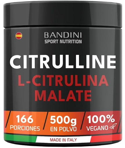 Bandini® L-Citrulina Malato en polvo 2:1 500g, 3g para dosis diaria, fórmula de citrulina malate en una proporción de 2:1, perfecto para entrenamientos de alta intensidad, polvo insípido, vegano